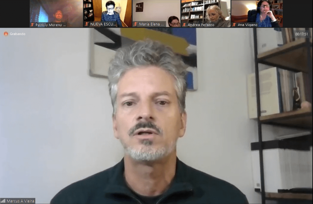 Hola a todos, buenas noches. Es un placer estar con vosotros hoy, amigos, colegas de la NEL y también otros. Padecemos un poco el estado de la cuestión. Eso es lo que voy a hacer: exponer las cuestiones que nos han puesto en estos tiempos. Teníamos una fecha previa para el encuentro y no se pudo hacer porque muchas cosas muy difíciles pasan en este momento, especialmente en Colombia, pero en Brasil también. Así que me doy también como tarea de no dejar de hablar de una articulación que tal vez se puede hacer entre nosotros, lo que estamos hablando hoy entre nosotros en términos de nuevas sexualidades, pero también de la economía política. No sé si lo lograré, pero intentaré.