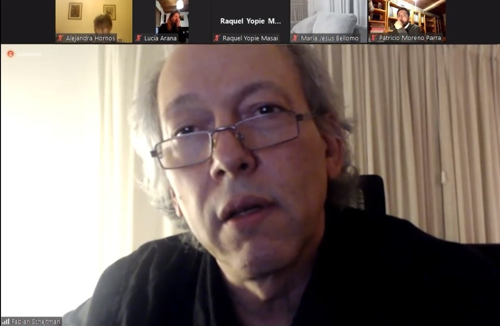 Quiero contarles un poco el contexto de la invitación que cursamos y que invitamos a Fabián. Inclusive estaba dispuesto a viajar, pero presencial con mucho gusto en otra oportunidad. Todavía seguimos por Zoom. Acá ya estamos empezando a abrir. Bueno, agradecerte muchísimo. Y contarles que la invitación fue cursada en el contexto del Espacio de Investigación Clínica que tenemos en la Sección NEL-Santa Cruz a partir de que trabajamos en módulos durante el año. Tuvimos un primer módulo. Este es el segundo y el tema es “Síntoma y sinthome”. Entonces, “Evolución y progreso” que lo tomamos como título de otra colega. Entonces, al final de un módulo hacemos pequeñas investigaciones y elaboraciones, compartimos y conversamos ese trabajo presentando también viñetas clínicas o casos. Al final invitamos a algún colega de la AMP que haya publicado sobre el tema que nos ocupa y, en ese contexto, es que Raúl Arancibia, Edgar Marcelo Guzmán -desde Sucre- y yo -que estaba coordinando también ese módulo decidimos invitar a Fabián. Ese es el contexto.